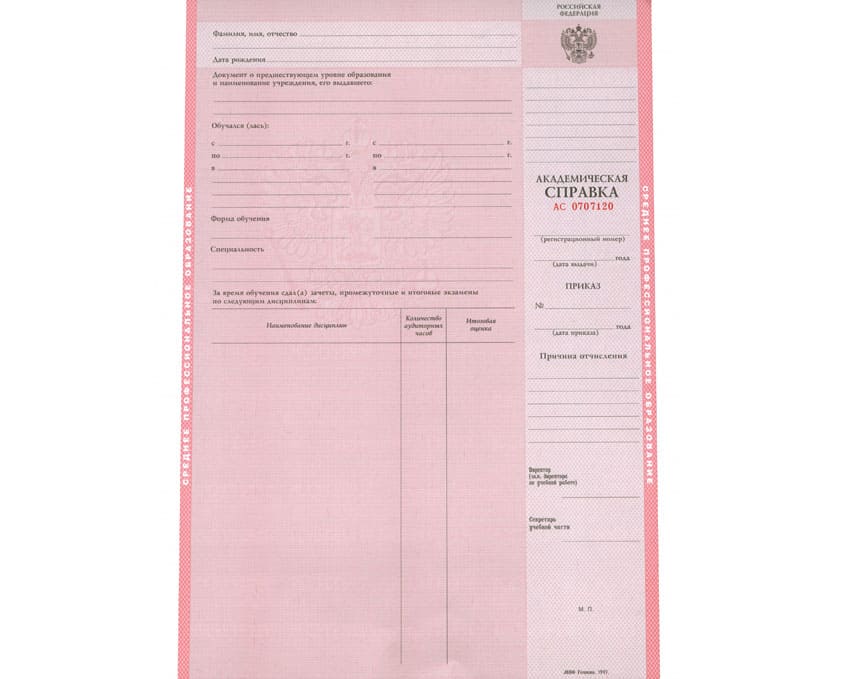 Академсправка – это та бумага, которая может быть затребована руководством организации, где вы работаете, для подтверждения информации об обучении в определенное время, но оно по каким-либо обстоятельствам не было завершено или не получен диплом, подтверждающий профессиональную квалификацию. Как правило, такие бумаги необходимы учащимся или студентам, которые не сдали сессию, получили неудовлетворительные результаты или вообще попали на отчисление. Справка академическая отражает все учебные часы, прослушанные учеником, дисциплины и баллы, полученные в результате учебы. У нас возможно быстро купить академическую справку.  Подходим ответственно, изготавливаем бумагу качественно на подлинных бланках гособразца.